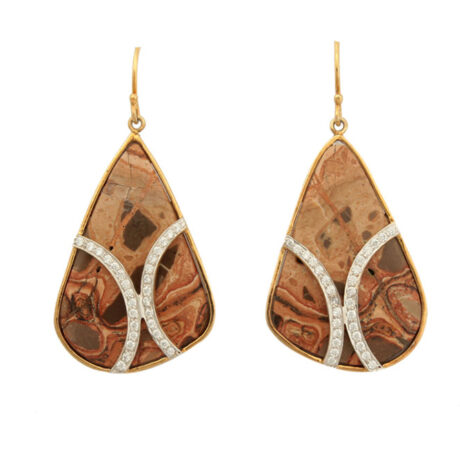 Silver Gold Plated Agate & Chris-cross Zircon Hanging Earring