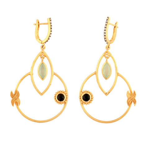 Silver Gold Plated Garnet & Aqua Chalcedony Earring