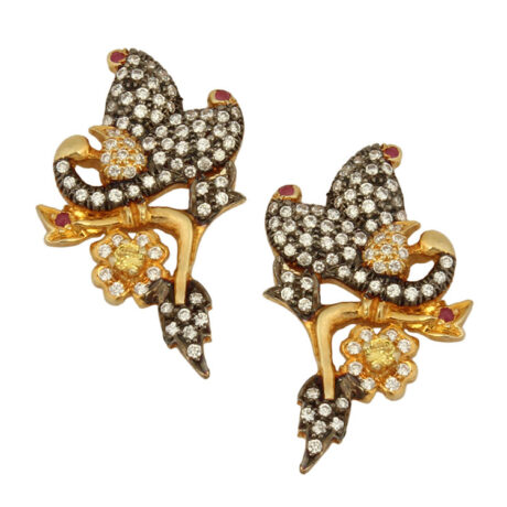 Silver Gold Plated with Black Rhodium Crystal Polki & Zircon Bird Earring