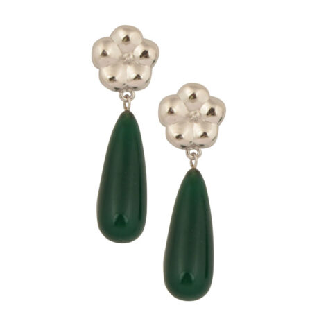 Silver Green Onyx, Green Hydro & Zircon Earring