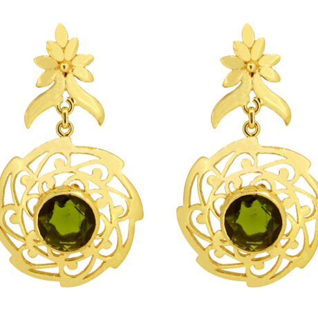 Silver Alloy Gold Plated with Rose Plated Peridot Hydro Earring