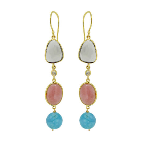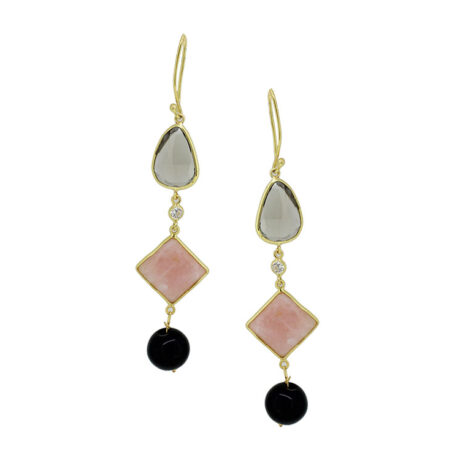 Silver Gold Plated Smoky, Black Onyx & Pink Opal Earring