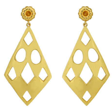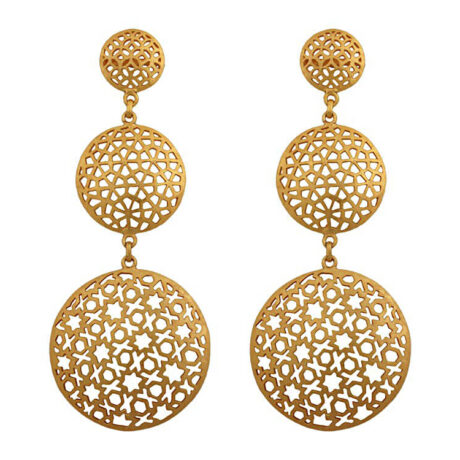 Silver Alloy Gold Plated Floral Jali Dangler Earring