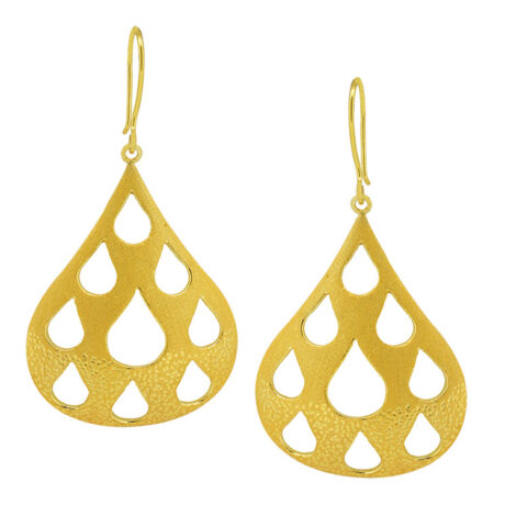 Silver Alloy Gold Plated Mesh Pear Hook Earring