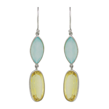 Silver Lemon Quartz & Aqua Blue Chalcedony Earring