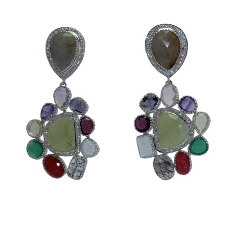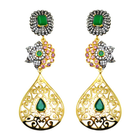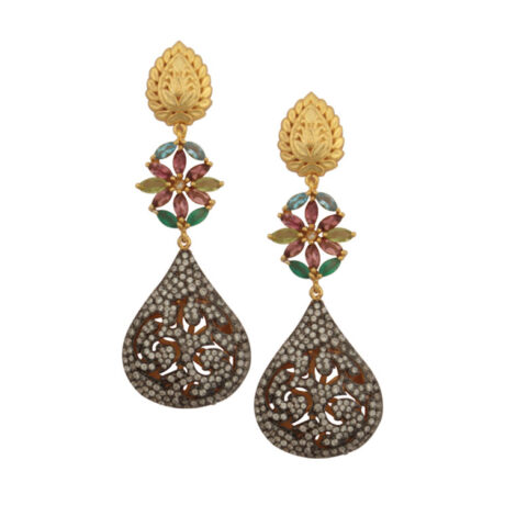 Silver Gold Plated with Black Rhodium Multi Color Gemstone & Zircon Earring