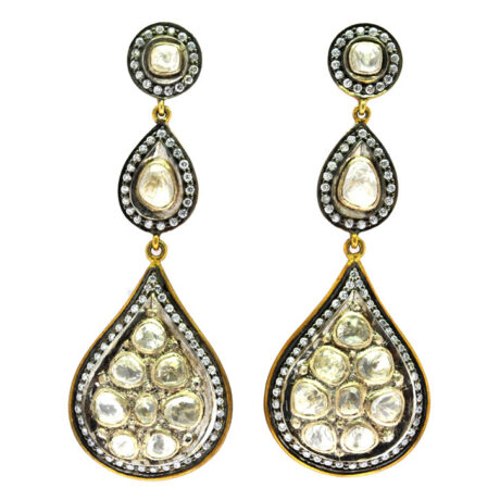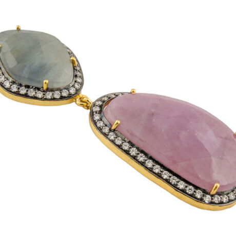 Silver Gold Pated with Black Rhodium Sapphire, Diamond & Multi Gemstone Earring