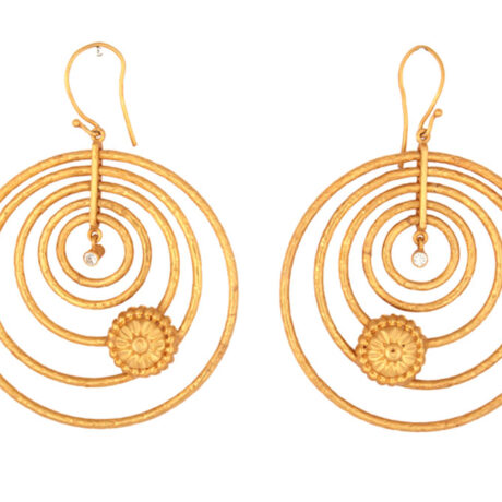 Silver Gold Plated with Black Rhodium Zircon Floral Earring
