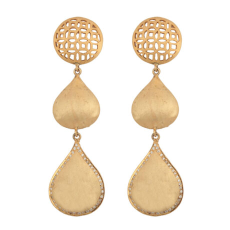 Silver Alloy Gold Plated Zircon Dangler Earring