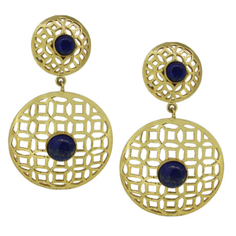 Silver Alloy Gold Plated with Black Rhodium Multi Stone, Blue & Off Blue Beads Jhumki