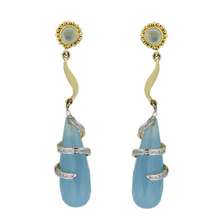 Silver Gold Plated Aqua Blue Drop & Zircon Earring