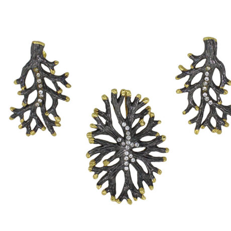 Silver Gold Plated with Black Rhodium Zircon Pendant Set