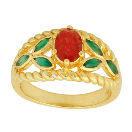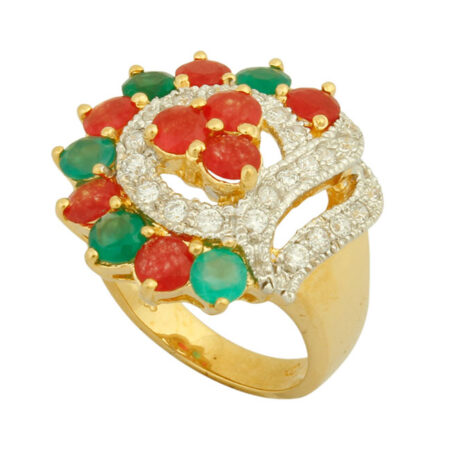 Silver Gold Plated Ruby Hydro & Green Onyx Designer Ring
