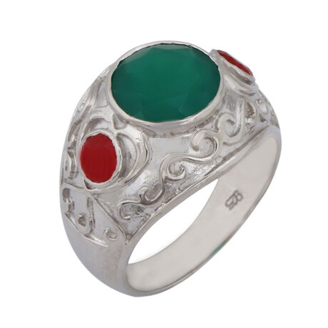 Silver Gold Plated with Black Rhodium Garnet, Hydro Ruby & Green Onyx Ring