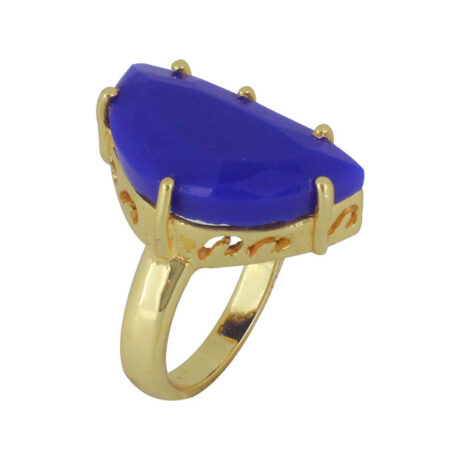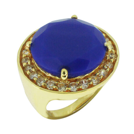 Silver Alloy Gold Plated Navy Blue & Zircon Ring