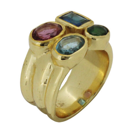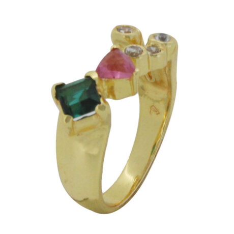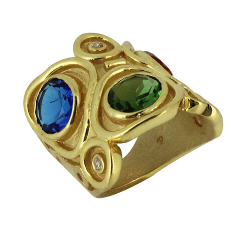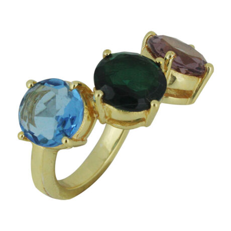 Silver Alloy Gold Plated Multi Color Stone Ring
