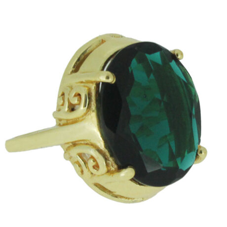 Silver Alloy Gold Plated Oval Green Hydro Ring