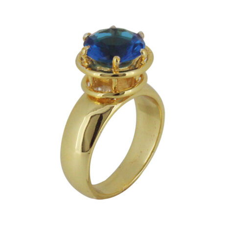 Silver Alloy Gold Plated Round Blue Hydro Glass Ring