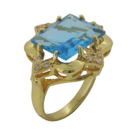 Silver Alloy Gold Plated Sky Blue Hydro & Zircon Ring