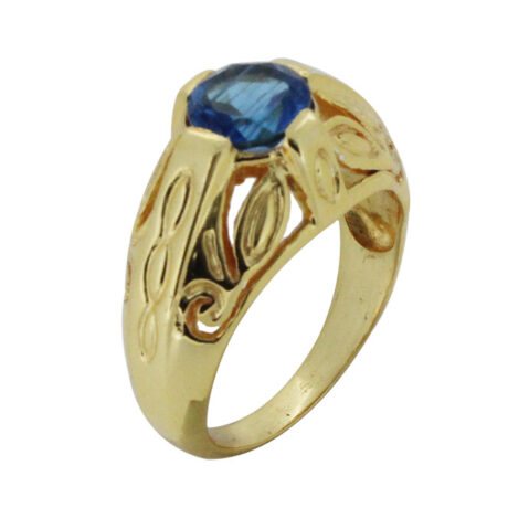 Silver Alloy Gold Plated Round Blue Hydro Filigree Ring