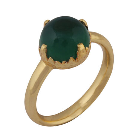 Silver Alloy Gold Plated Round Green Hydro Ring