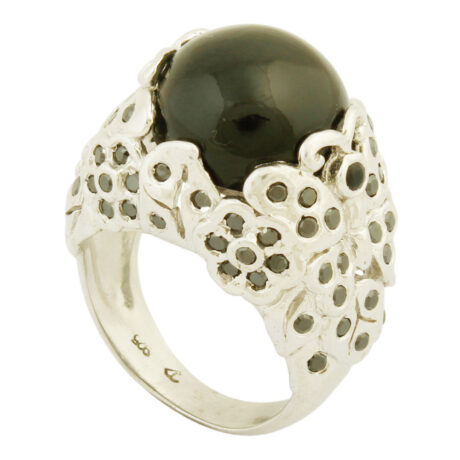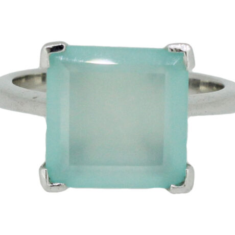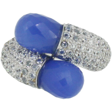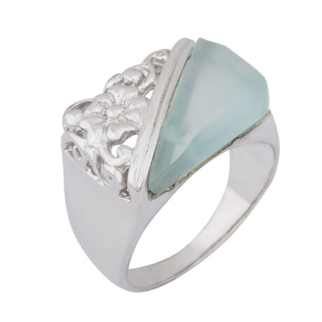 Silver Aqua Blue Chalcedony & Zircon Designer Ring