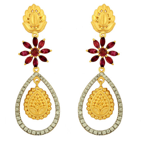 Silver Gold Plated Garnet & Zircon Floral Earring