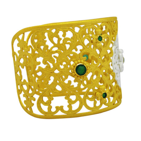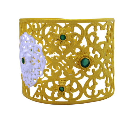 Silver Gold Plated Green Onyx Vintage Mesh Handcuff
