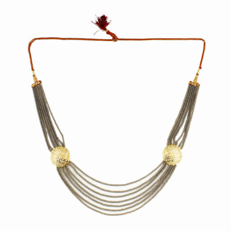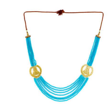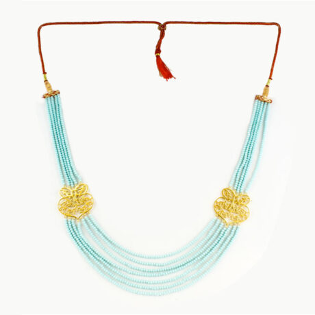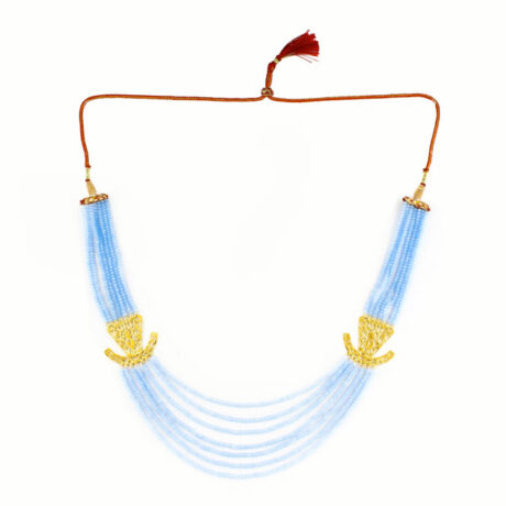Silver Alloy Gold Plated Jali Blue Beads Necklace