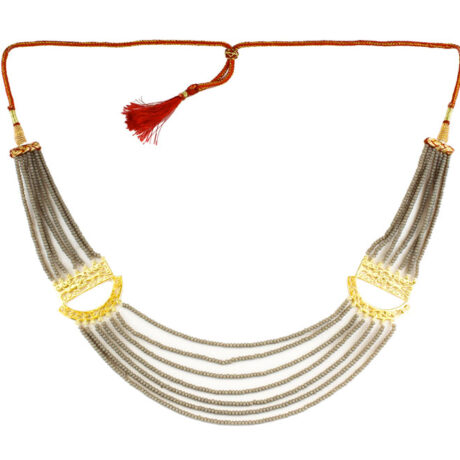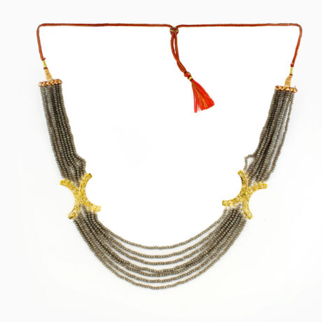Silver Alloy Gold Plated Light Brown Beads Necklace