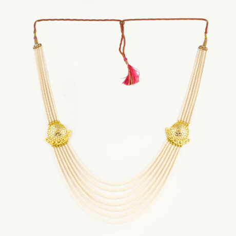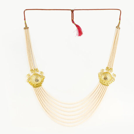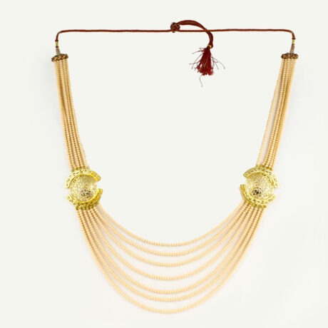 Silver Alloy Gold Plated Halfmoon Ivory Beads Necklace