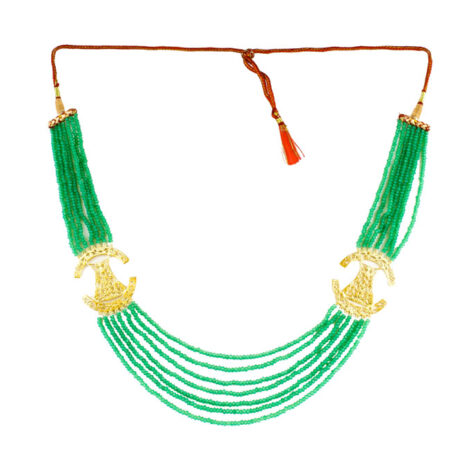 Silver Alloy Gold Plated Half Moon Light Green Beads Necklace