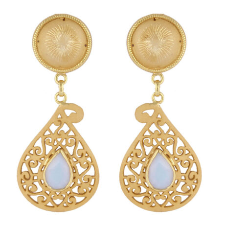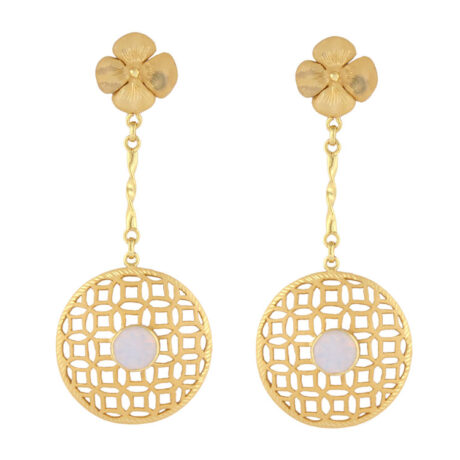 Silver Alloy Gold Plated Moon Gemstone Dangler Earring
