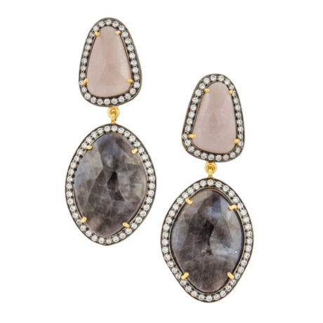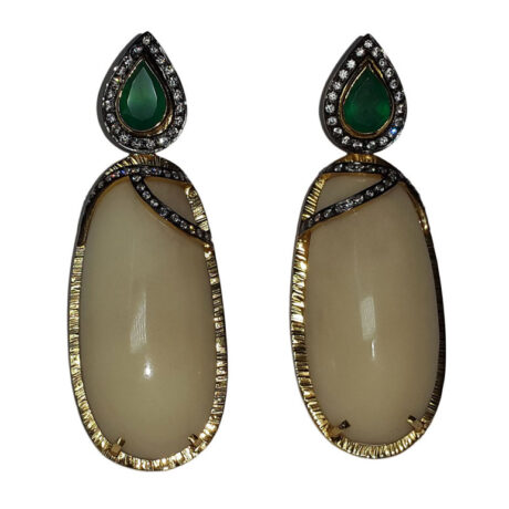 Silver Gold Plated with Black Rhodium Green Onyx, White Opal & Zircon Earring