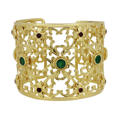 Silver Gold Plated Green Onyx & Garnet Handcuff